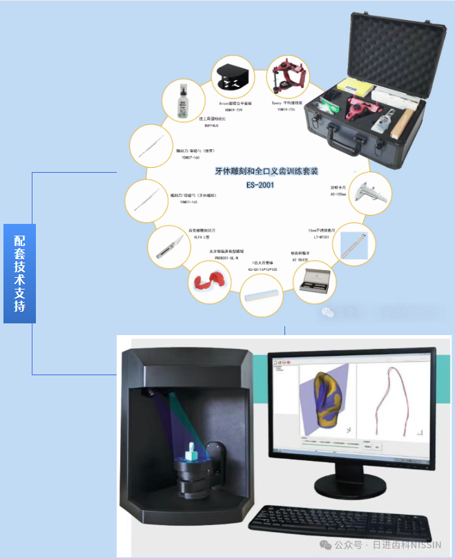 本次大賽由日進齒科材料(昆山)有限公司提供全程配套技術支持和服務。其中全口義齒排列和牙體雕刻模塊全程使用了訓練套裝(由NISSIN提供的牙體雕刻和全口義齒訓練套裝)、牙體雕刻模塊結合了客觀化結果評估系統(tǒng)(由NISSIN提供的牙體雕刻評價及牙科設計系統(tǒng)(TDS-200)),確保了比賽的公平性、公正性、客觀性。