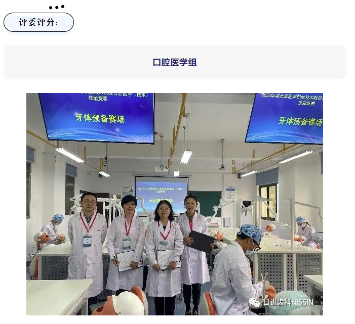 評委組由各參賽院校推薦選拔,并特邀孝感市口腔醫(yī)院高銀艷主任醫(yī)師擔(dān)任口腔醫(yī)學(xué)組的主評委;首都醫(yī)科大學(xué)附屬北京口腔醫(yī)院修復(fù)工藝中心李靖桓主任擔(dān)任口腔醫(yī)學(xué)技術(shù)組主評委。選手最終成績由評委老師主觀評價與日進(jìn)專業(yè)評分系統(tǒng)客觀評價相結(jié)合。確保了整個競賽在公平、公正的基礎(chǔ)上進(jìn)行。