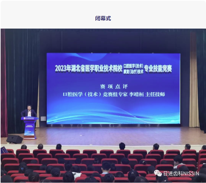 ??2023年10月28日,湖北省醫(yī)學(xué)職業(yè)技術(shù)院??谇会t(yī)學(xué)(技術(shù))專業(yè)技能競賽在湖北孝感成功舉辦。本次競賽由湖北省衛(wèi)生健康委員會主辦,湖北省醫(yī)學(xué)職業(yè)技術(shù)教育研究室、湖北職業(yè)技術(shù)學(xué)院承辦,日進(jìn)齒科材料(昆山)有..