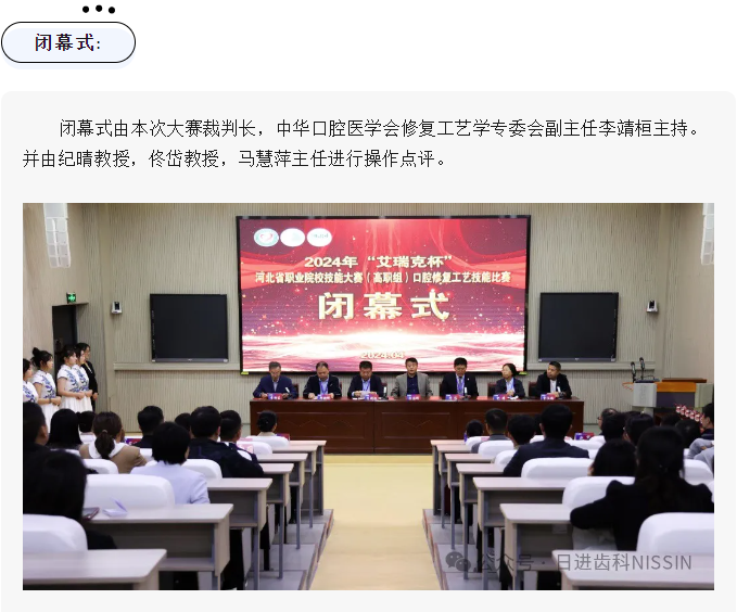 由河北省教育廳主辦,承德護(hù)理職業(yè)學(xué)院與河北省衛(wèi)生職業(yè)教育集團(tuán)承辦,日進(jìn)齒科材料(昆山)有限公司協(xié)辦的“2024年河北省職業(yè)院校技能大賽(高職組)口腔修復(fù)工藝技能比賽”于2024年4月28日在承德護(hù)理職業(yè)學(xué)院如期舉辦。