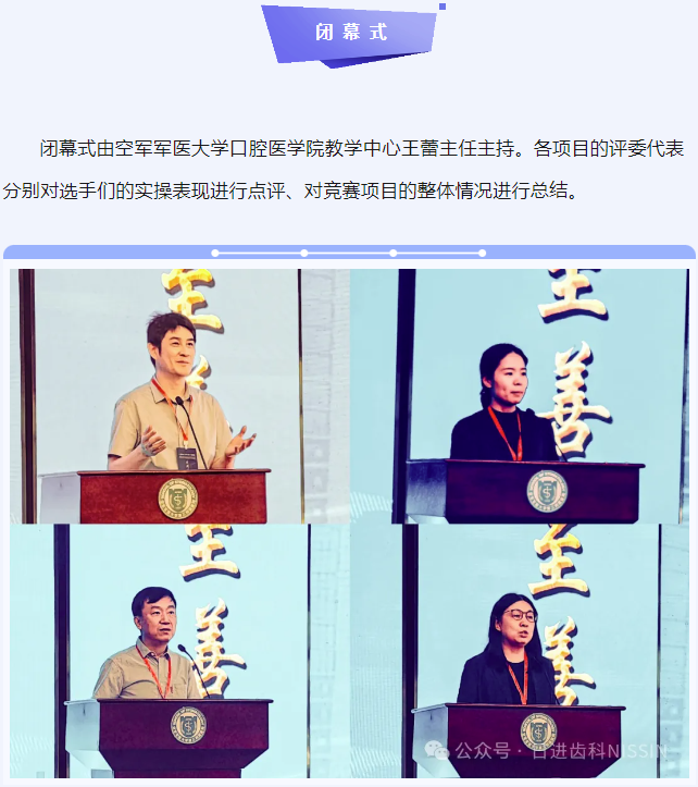 由中國信息協(xié)會主辦,空軍軍醫(yī)大學(xué)第三附屬醫(yī)院承辦,日進(jìn)齒科材料(昆山)有限公司協(xié)辦的2024年全國大學(xué)生創(chuàng)新發(fā)明大賽口腔醫(yī)學(xué)臨床技能挑戰(zhàn)賽(西北區(qū)域賽)于2024年6月25日在西安圓滿落下帷幕。