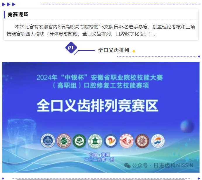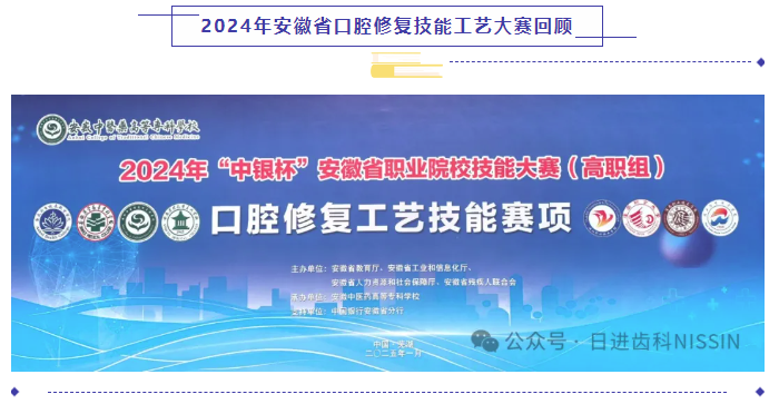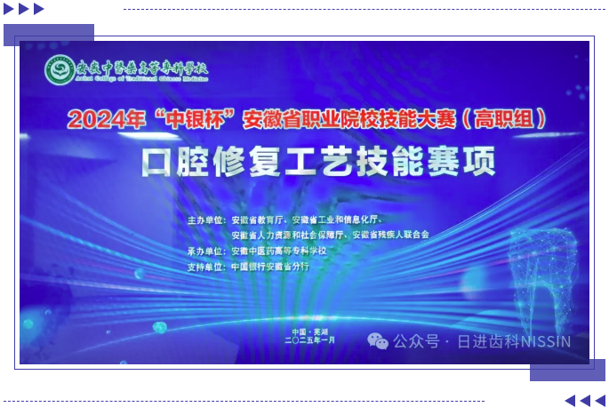 由安徽省教育廳、安徽省工業(yè)與信息化廳、安徽省人力資源與社會(huì)保障廳、安徽省殘疾人聯(lián)合會(huì)主辦,安徽中醫(yī)藥高等專(zhuān)科學(xué)校承辦,日進(jìn)齒科材料(昆山)有限公司技術(shù)支持的2024年“中銀杯”安徽省職業(yè)院校技能大賽(高職組)口腔修復(fù)工藝技能賽項(xiàng)于2025年1月16日在蕪湖舉辦。