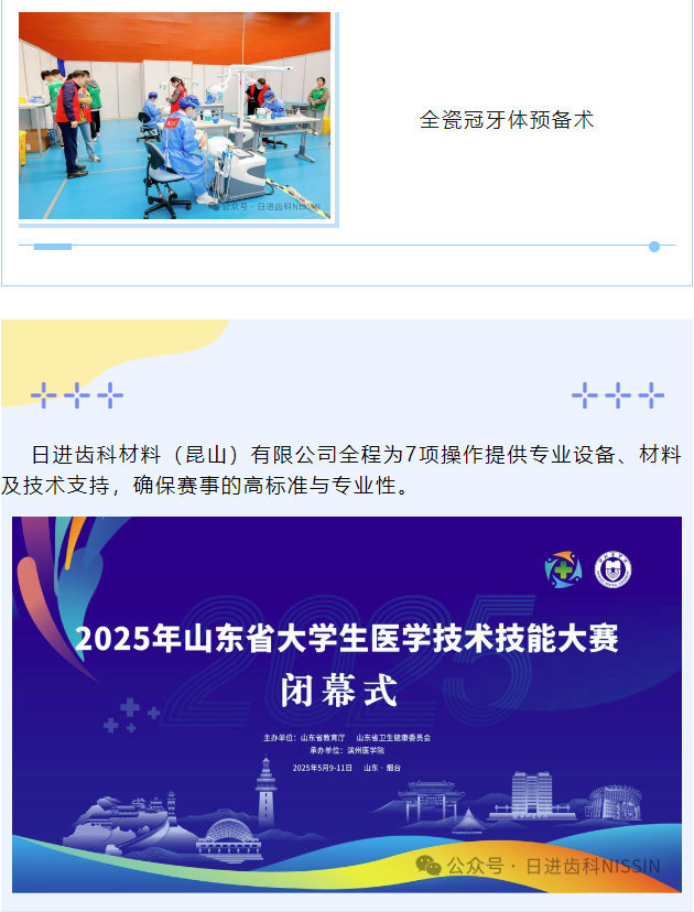 由山東省教育廳、山東省衛(wèi)生健康委員會(huì)主辦,濱州醫(yī)學(xué)院承辦,日進(jìn)齒科材料(昆山)有限公司協(xié)辦的“2025年山東省大學(xué)生醫(yī)學(xué)技術(shù)技能大賽(口腔醫(yī)學(xué)專業(yè)賽道)于2025年5月9日—5月11日在山東煙臺(tái)濱州醫(yī)學(xué)院如期舉辦。